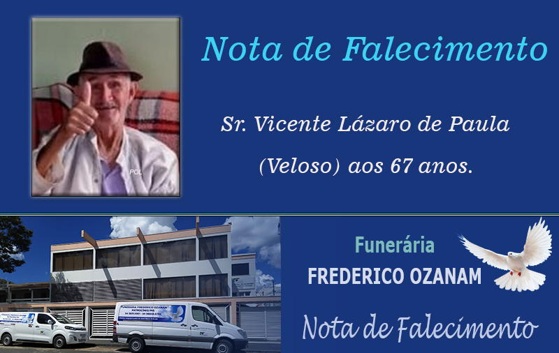 Faleceu nesta quinta-feira, 29 de outubro de 2025, em Patrocínio/MG, o Sr. Vicente Lázaro de Paula (Veloso) aos 67 anos.