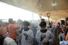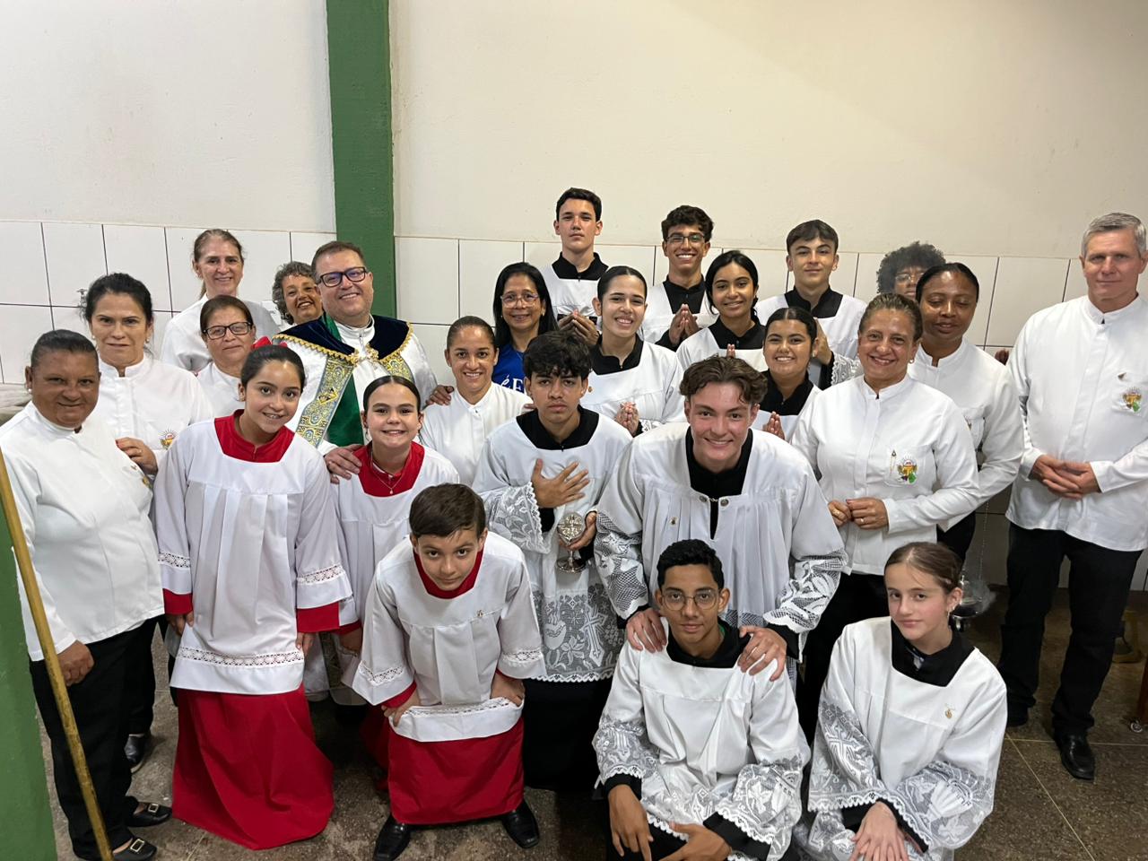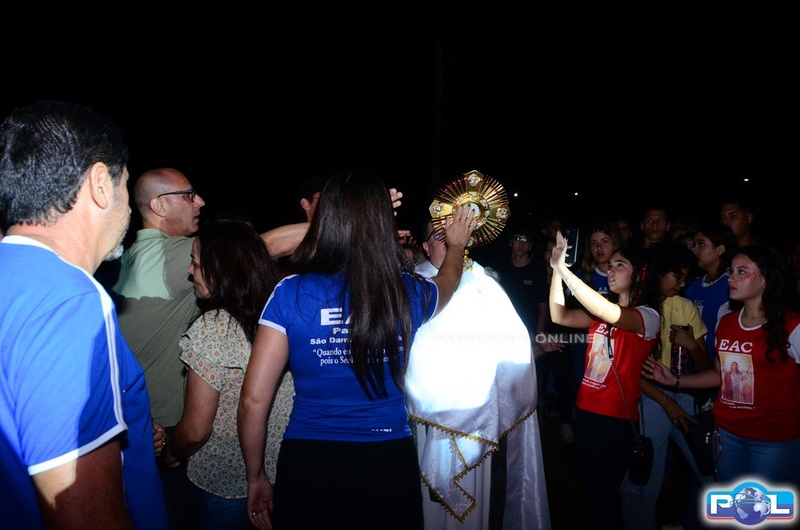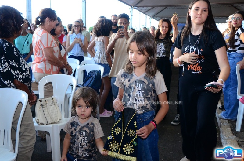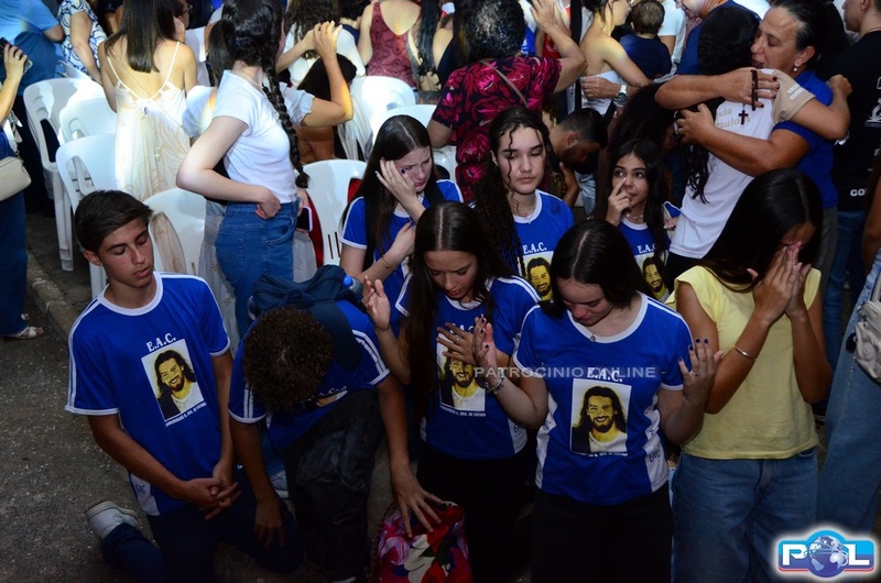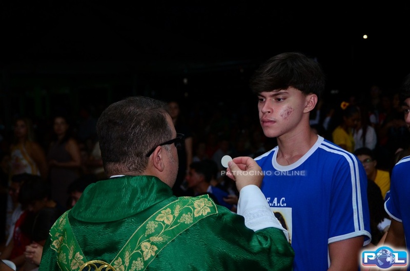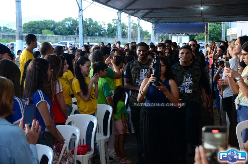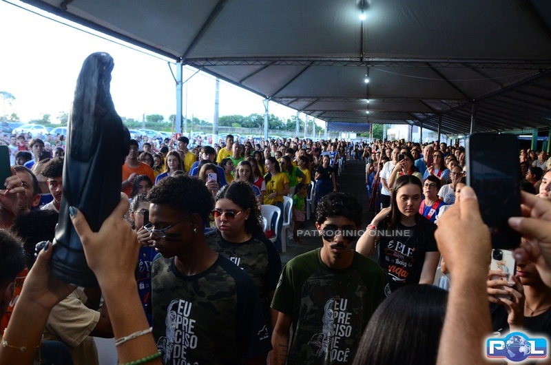 Antes, aconteceu a homenagem e a coroação a Nossa Senhora Aparecida, feita pelo EJC Exército de Cristo.
