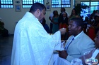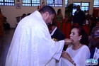Os noivos comungaram o Corpo de Jesus.