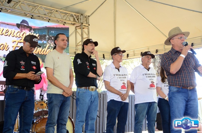 Ao final do percurso, os participantes acompanharam uma homenagem póstuma a Osmar Fernandes. Bastante emocionada, a neta do homenageado, Mariana Guimarães Fernandes, discursou em nome da família, destacando a importância do avô e sua ligação com a cavalgada.