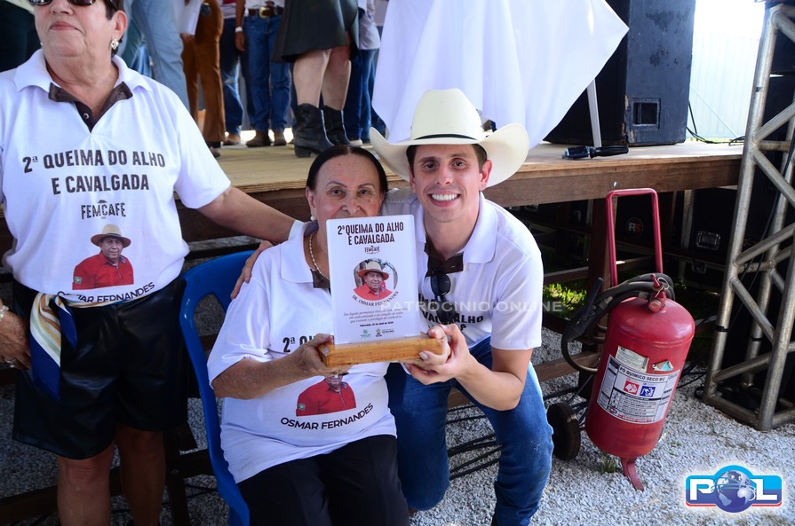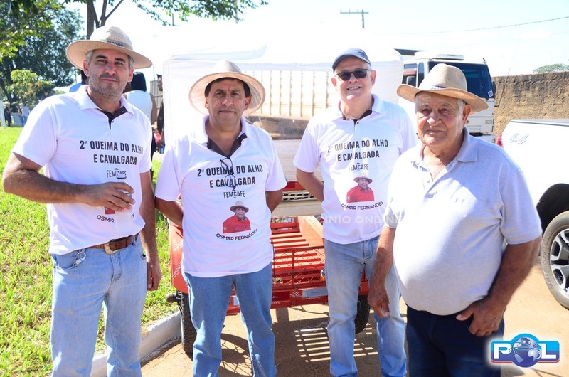 Após a cavalgada, o público participou da 2ª Queima do Alho, organizada por Riquelme Honorato. O almoço, em estilo buffet, trouxe pratos típicos da culinária tradicional, como costela no fogo de chão, leitão assado, arroz carreteiro, feijão tropeiro, torresmo e paçoca.