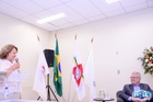 Presidindo a solenidade, a juíza diretora do Foro, Dra. Maria Tereza Horbatiuk Hypolito, abriu os discursos destacando a dimensão histórica da trajetória de Fátimo, atual contador judicial da comarca e servidor que completou mais de 50 anos de dedicação ao Judiciário. Em sua fala, a magistrada ressaltou que a Medalha Desembargador Hélio Costa simboliza ética e compromisso, valores que, segundo ela, Fátimo incorporou com rigor exemplar. A juíza lembrou episódios curiosos da rotina do homenageado, a precisão técnica de seu trabalho e sua importância na formação de gerações de servidores e magistrados.
