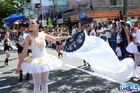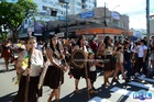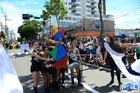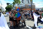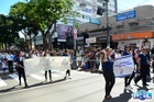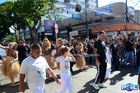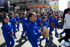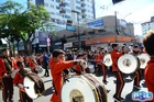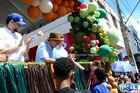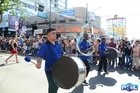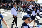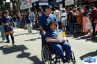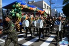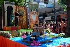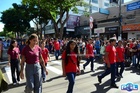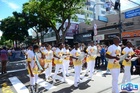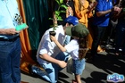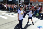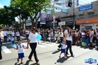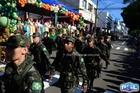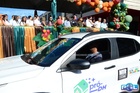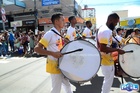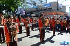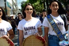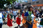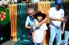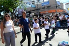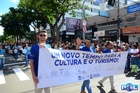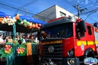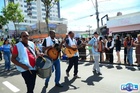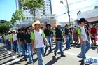 Durante o desfile, o prefeito e o vice receberam camisa e presentes.