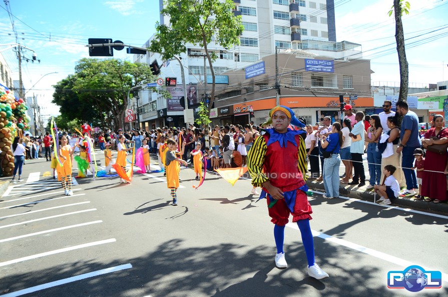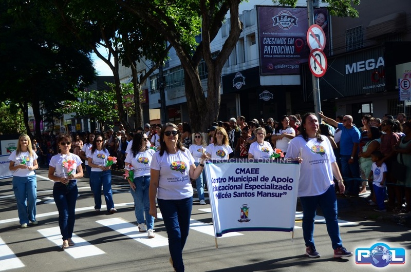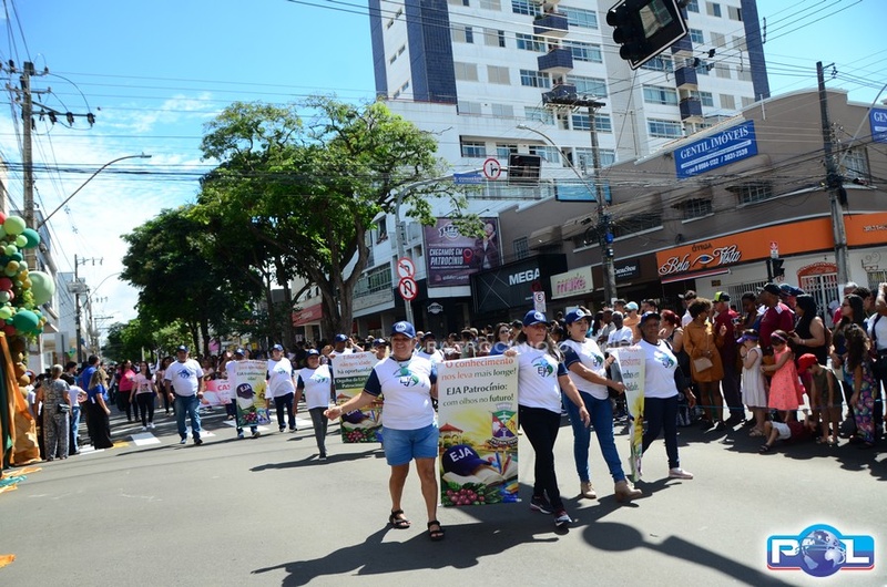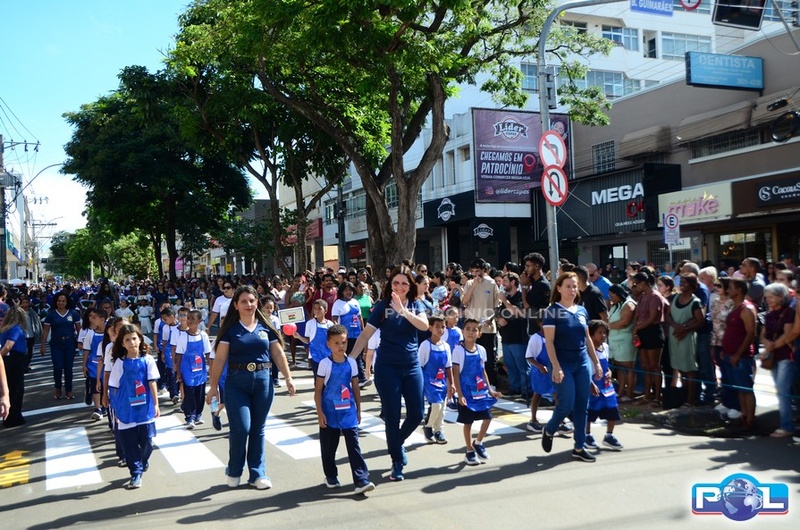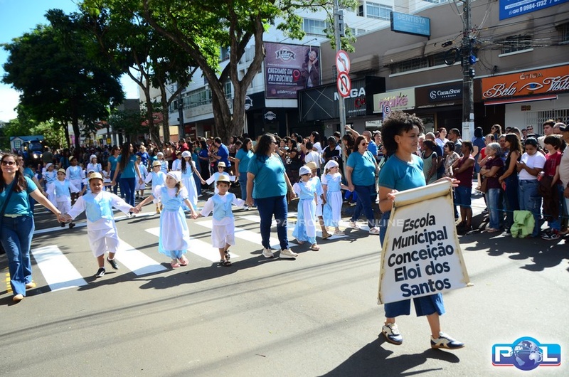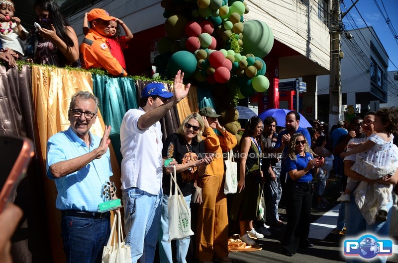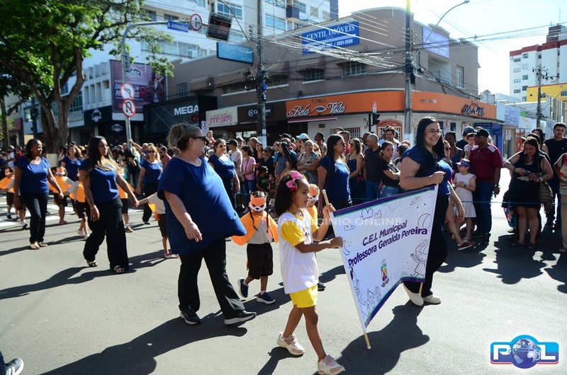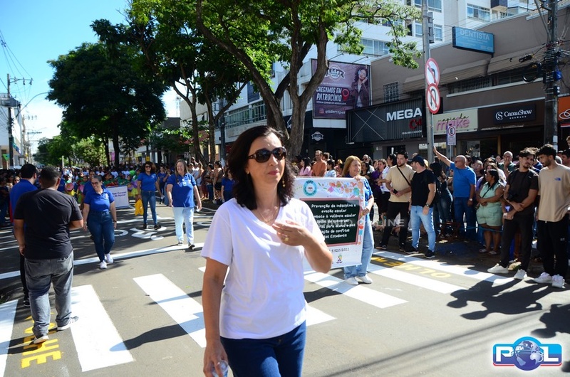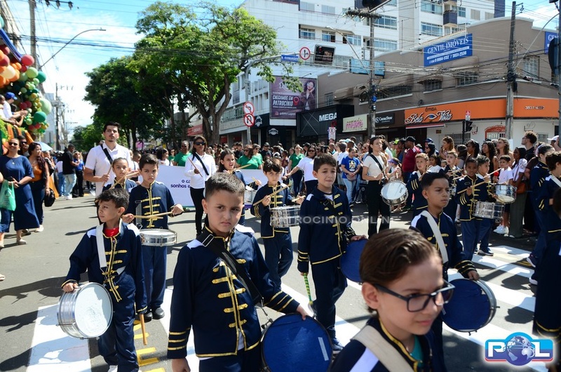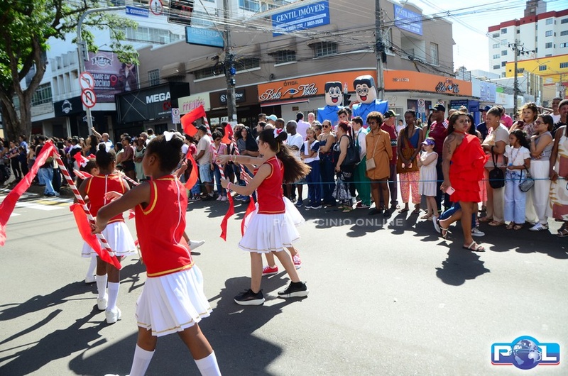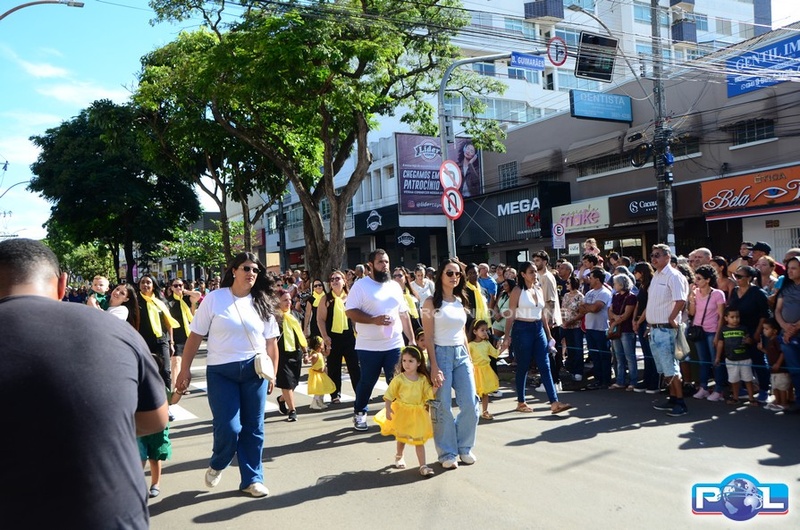 A educação teve destaque no desfile, com a participação de projetos e núcleos da rede municipal, evidenciando ações nas áreas de alfabetização, ensino especializado, línguas, ciências, artes, esportes e tecnologia.