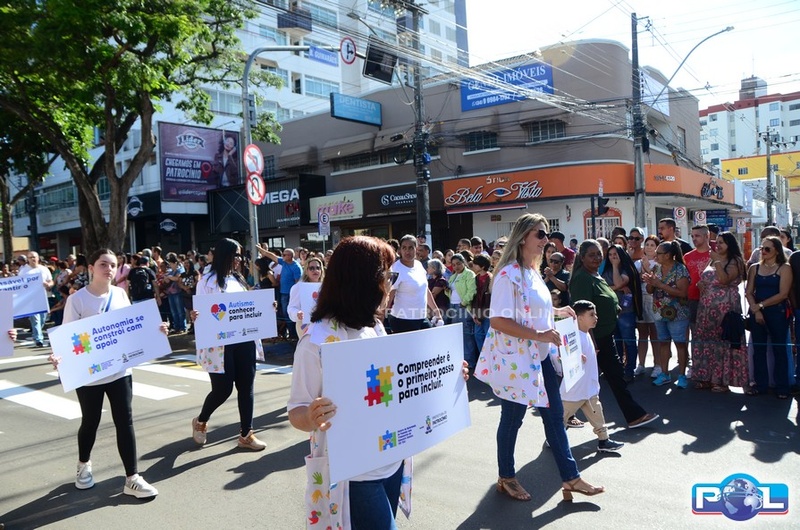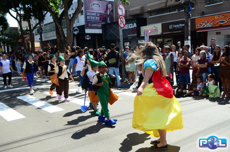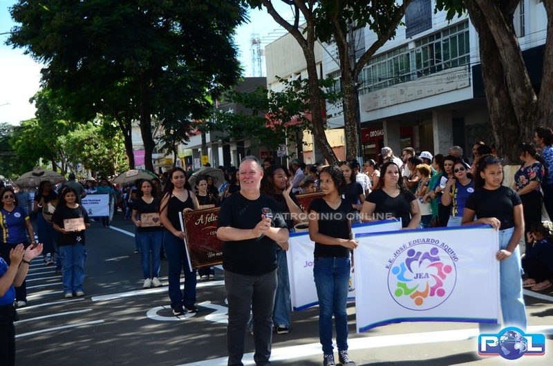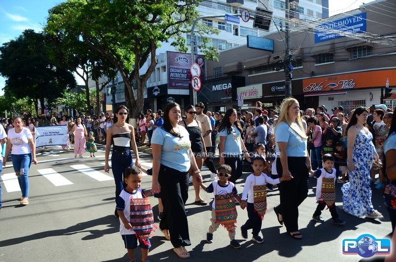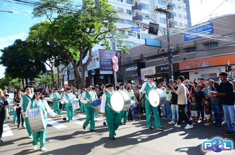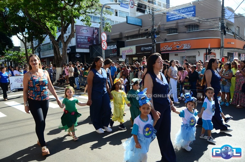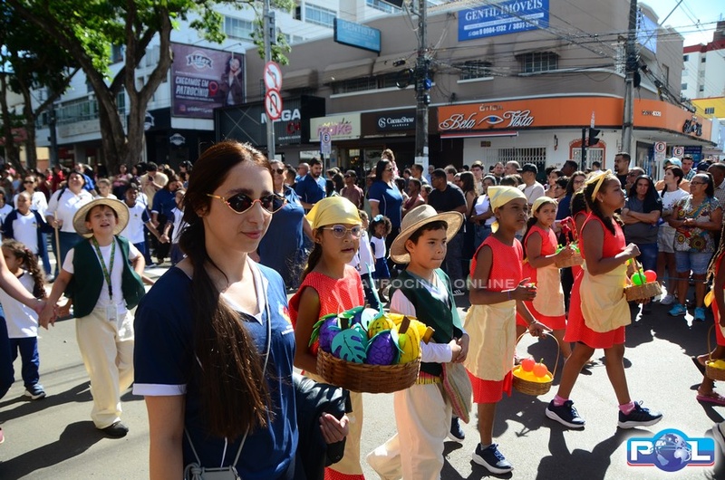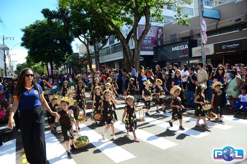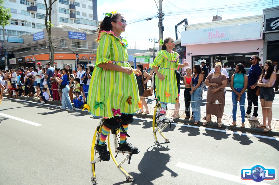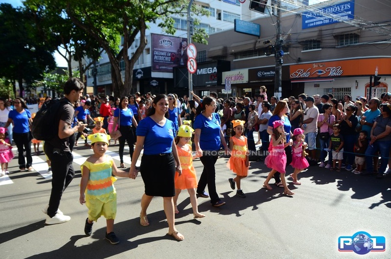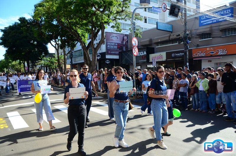 A educação teve destaque no desfile, com a participação de projetos e núcleos da rede municipal, evidenciando ações nas áreas de alfabetização, ensino especializado, línguas, ciências, artes, esportes e tecnologia.