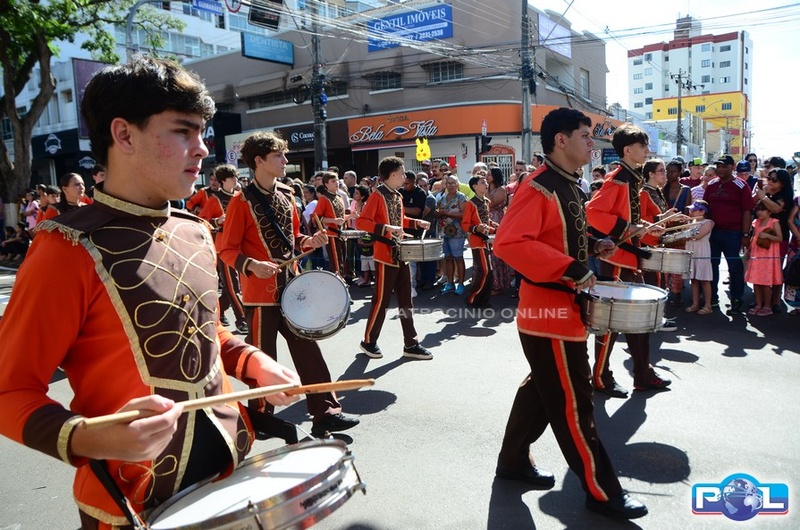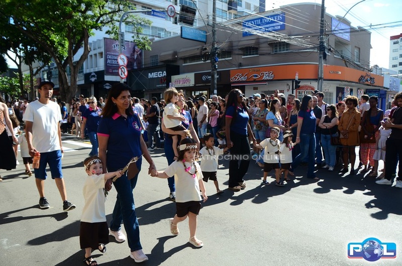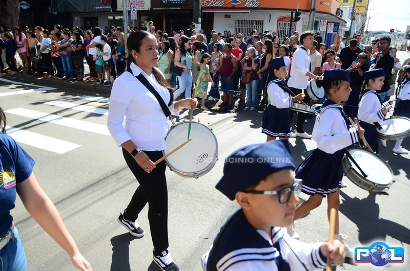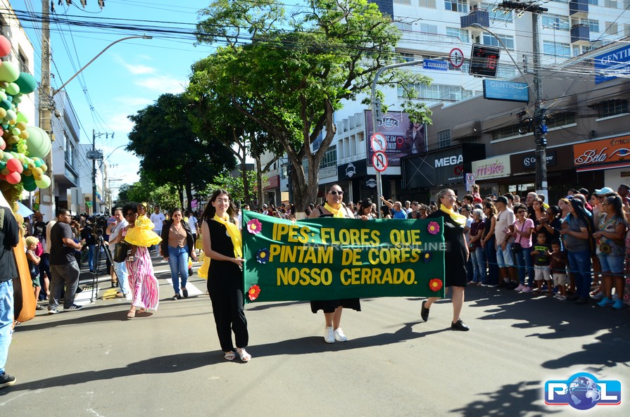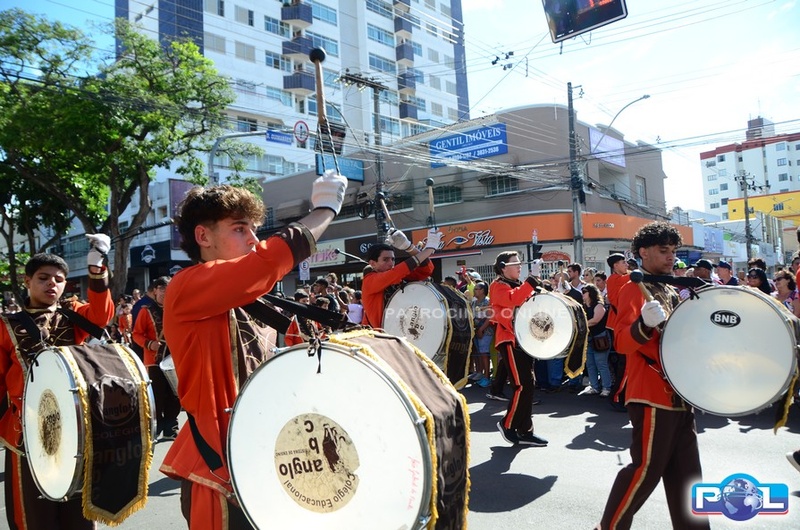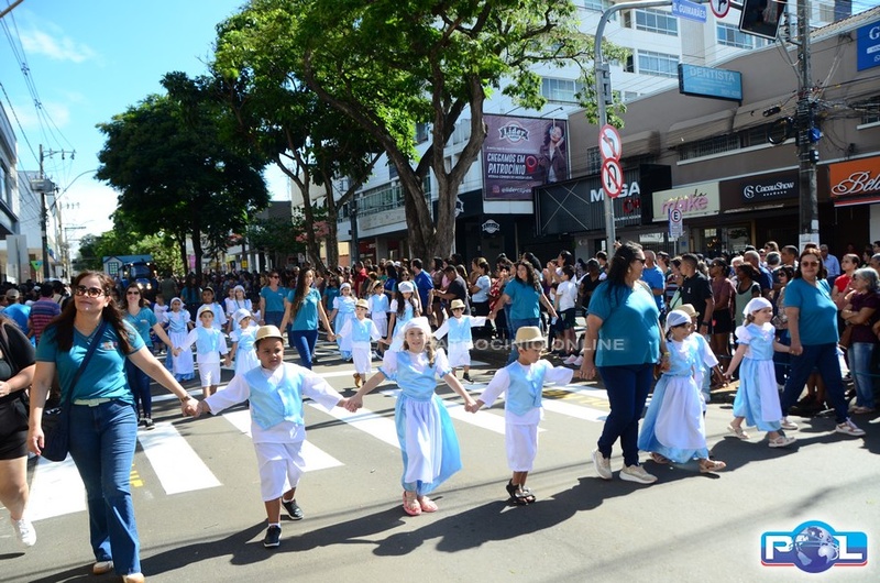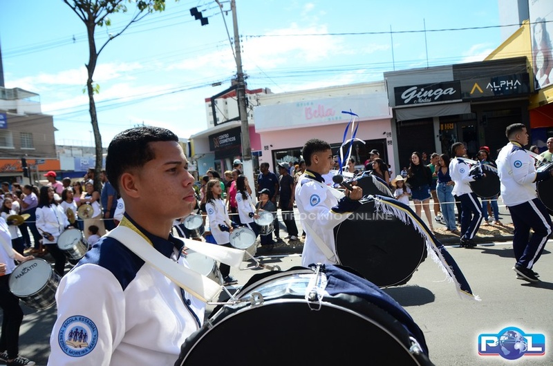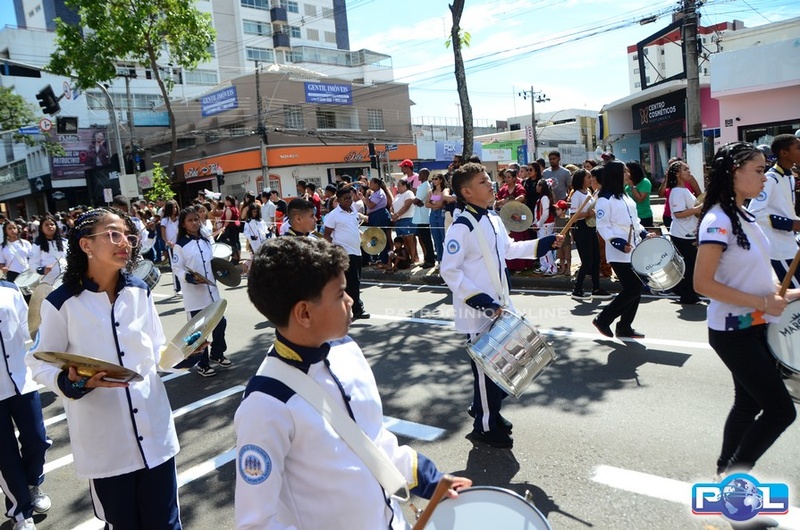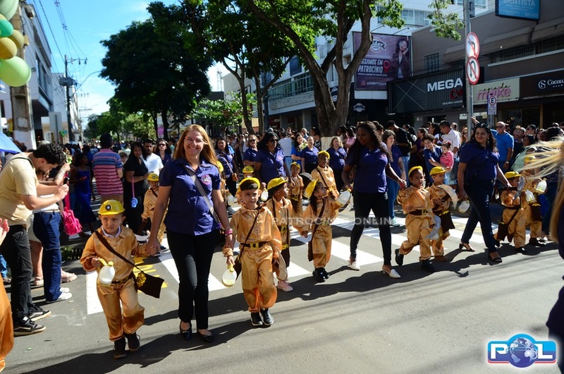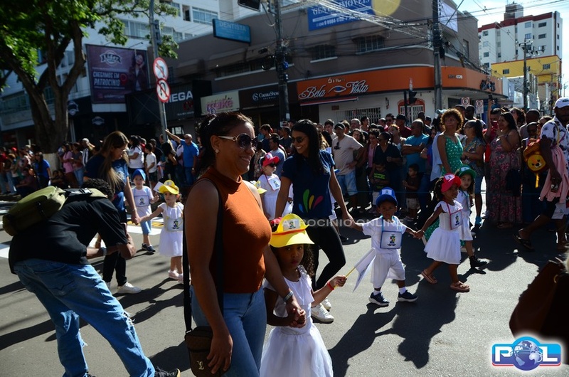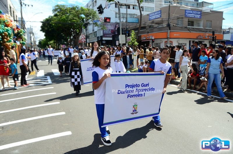 A educação teve destaque no desfile, com a participação de projetos e núcleos da rede municipal, evidenciando ações nas áreas de alfabetização, ensino especializado, línguas, ciências, artes, esportes e tecnologia.