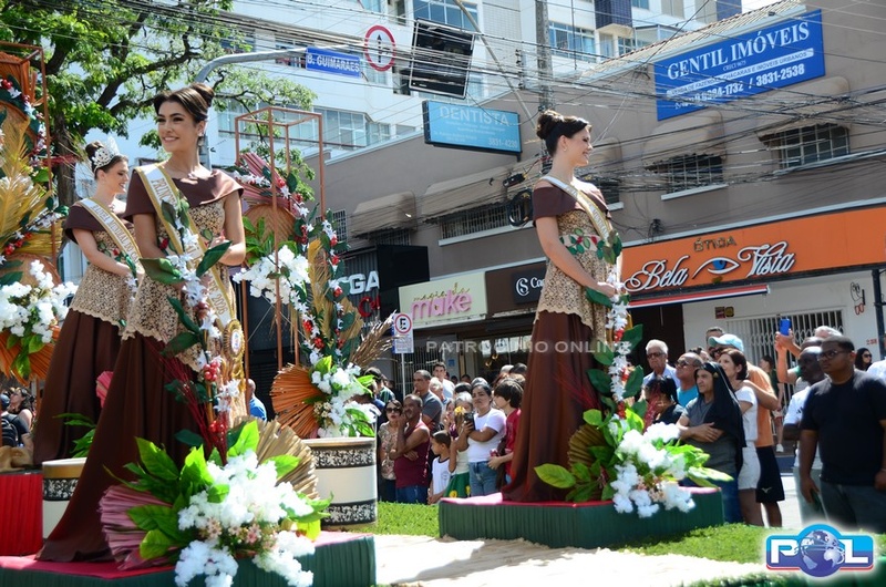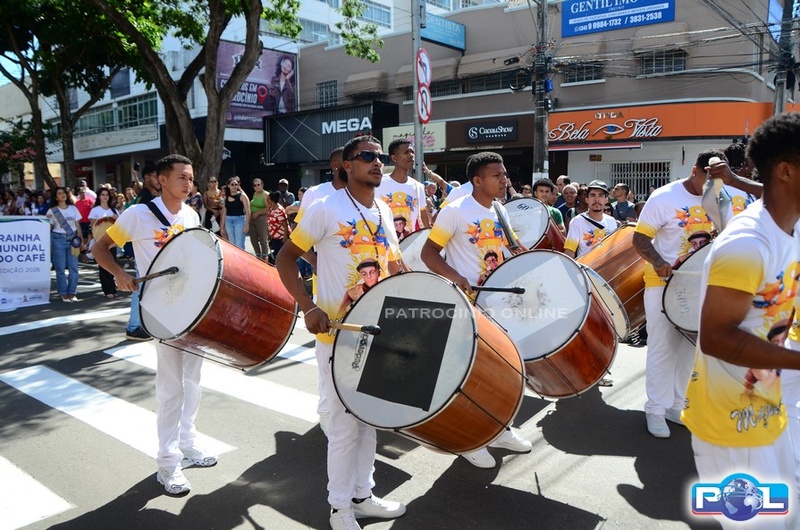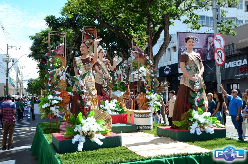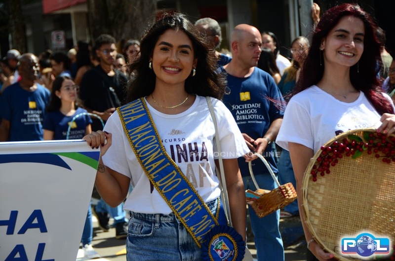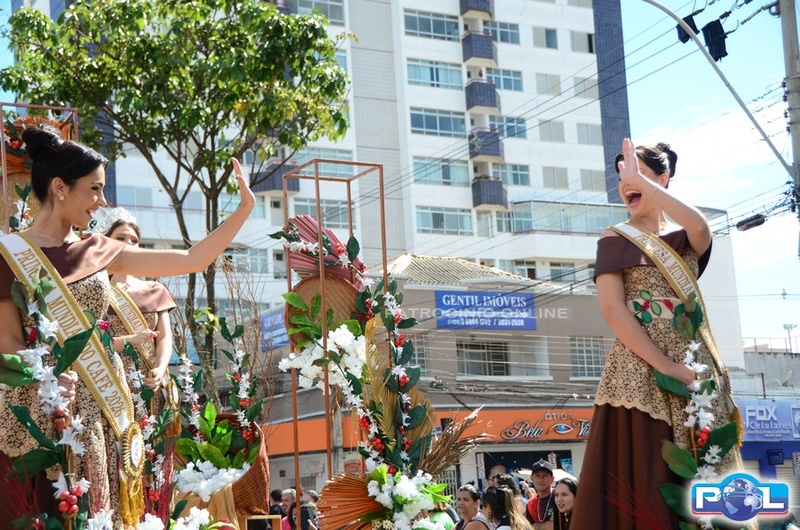 Os tradicionais carros alegóricos também marcaram presença, com a participação da Rainha Mundial do Café, Renata Zucoloto Vieira, e das princesas Maria Clara Silva Oliveira e Katlen Karolayne da Silva de Souza.