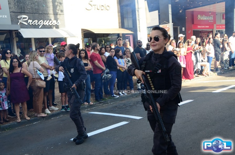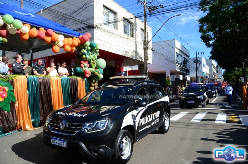 Na sequência, passaram as viaturas e veículos da Polícia Militar, Polícia Militar Rodoviária e Ambiental, Polícia Civil, Corpo de Bombeiros, Defesa Civil, Polícia Penal, SESTRAN, DAEPA e Secretaria Municipal de Obras.