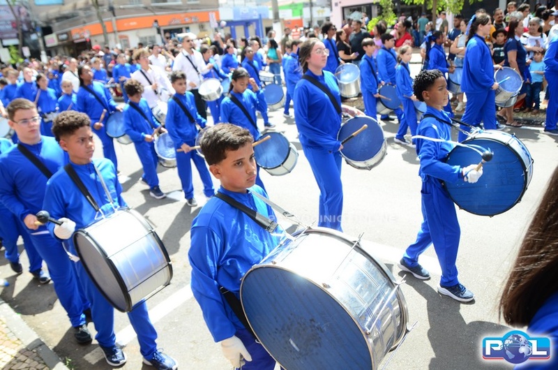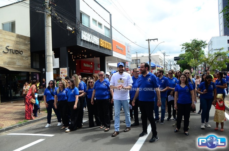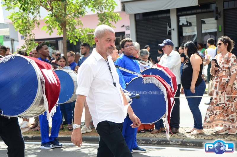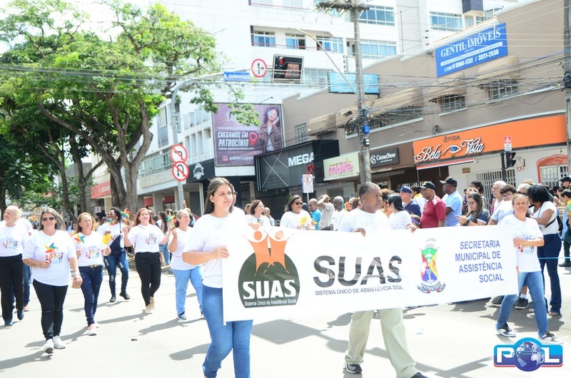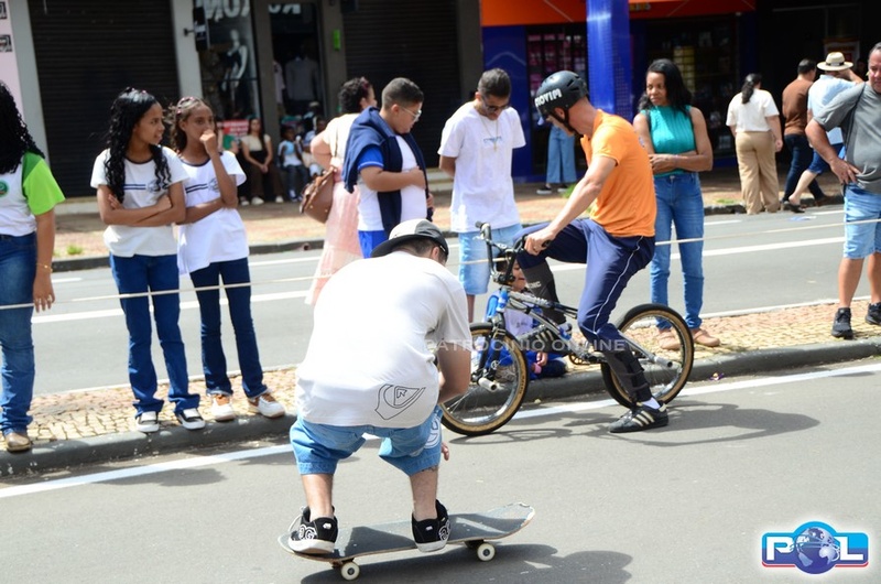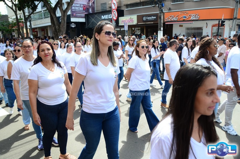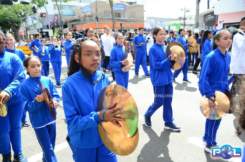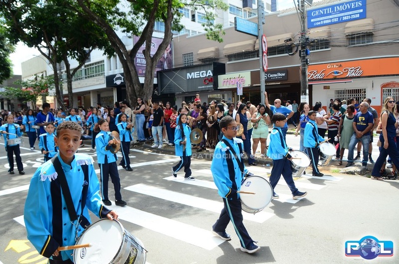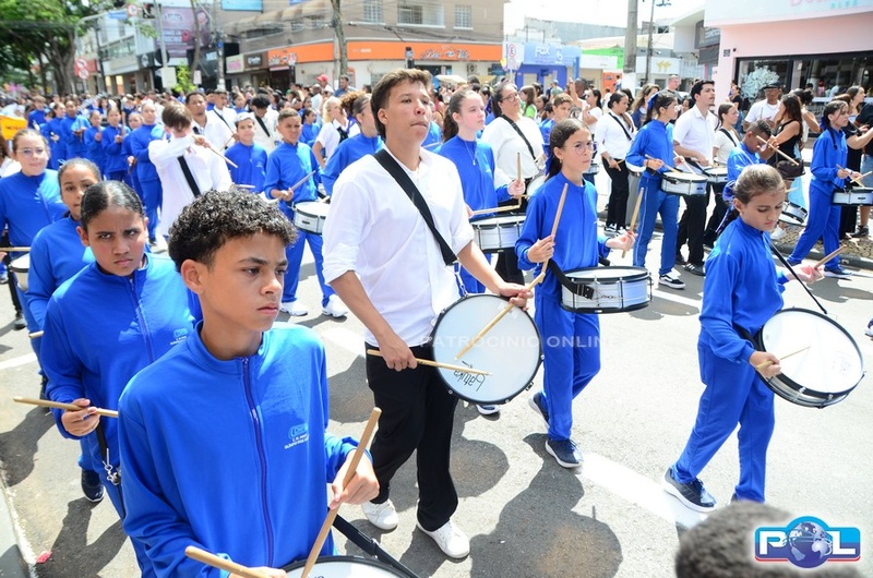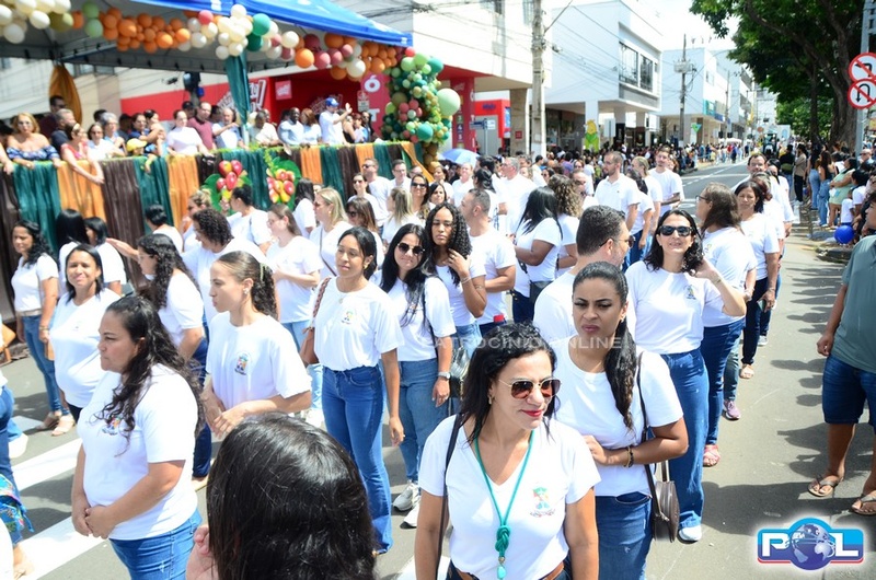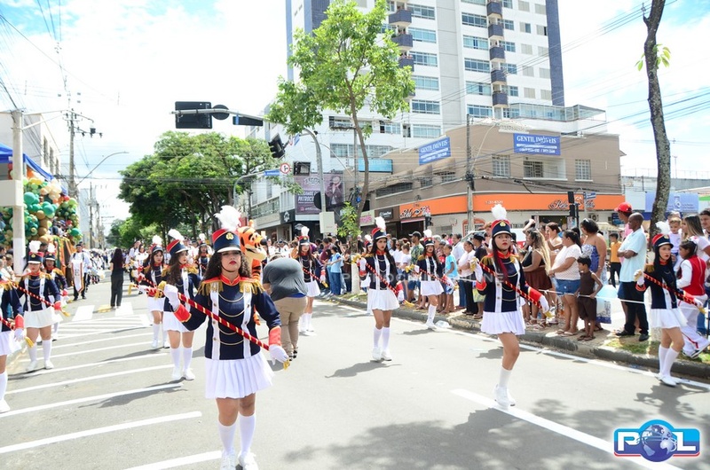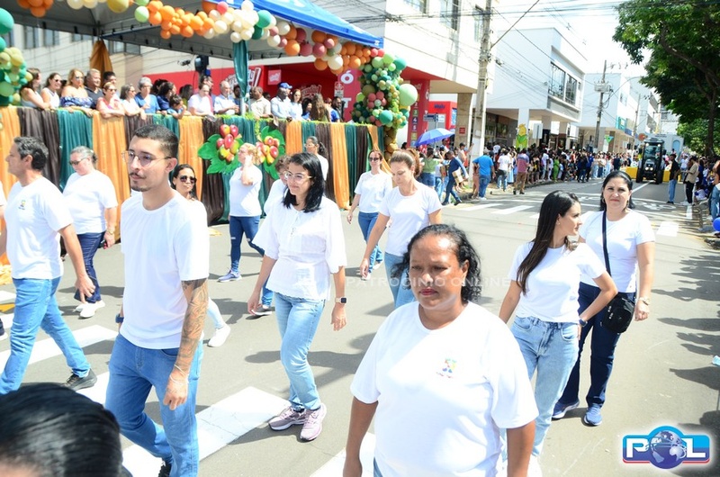 A educação teve destaque no desfile, com a participação de projetos e núcleos da rede municipal, evidenciando ações nas áreas de alfabetização, ensino especializado, línguas, ciências, artes, esportes e tecnologia.