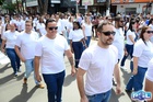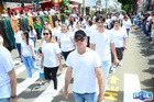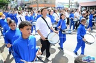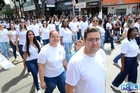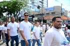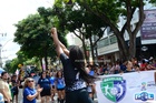 Durante o desfile, o prefeito e o vice receberam camisa e presentes.