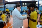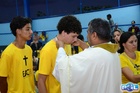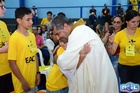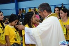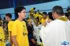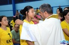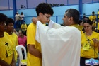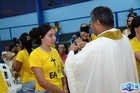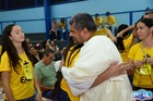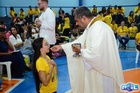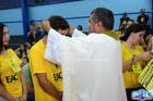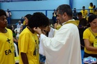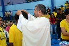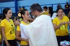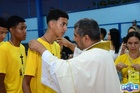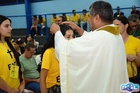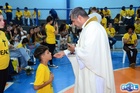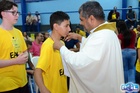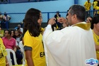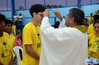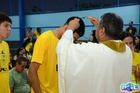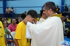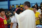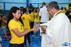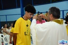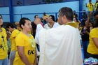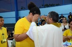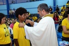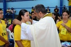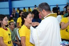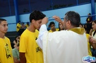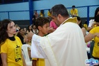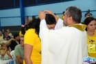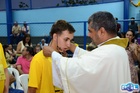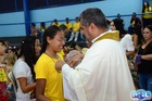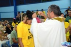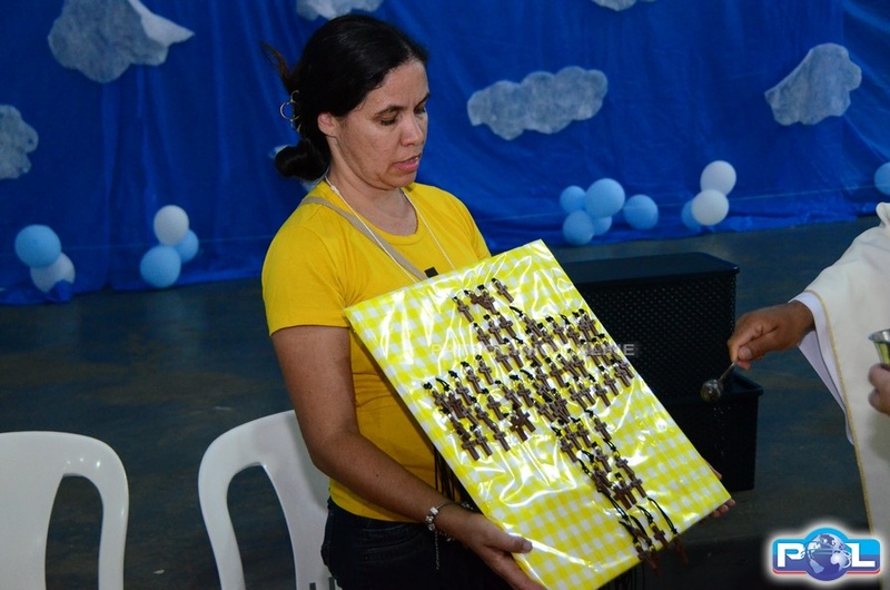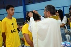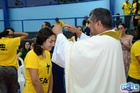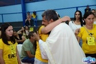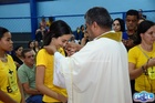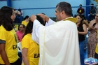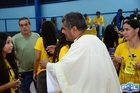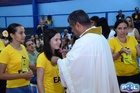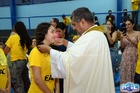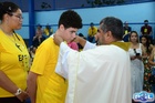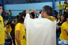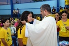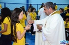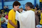 Ao final da Santa Missa, o padre entregou a cada adolescente um crucifixo.