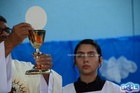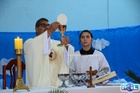 Seguindo o rito, o sacerdote consagrou o Corpo e o Sangue de Cristo.