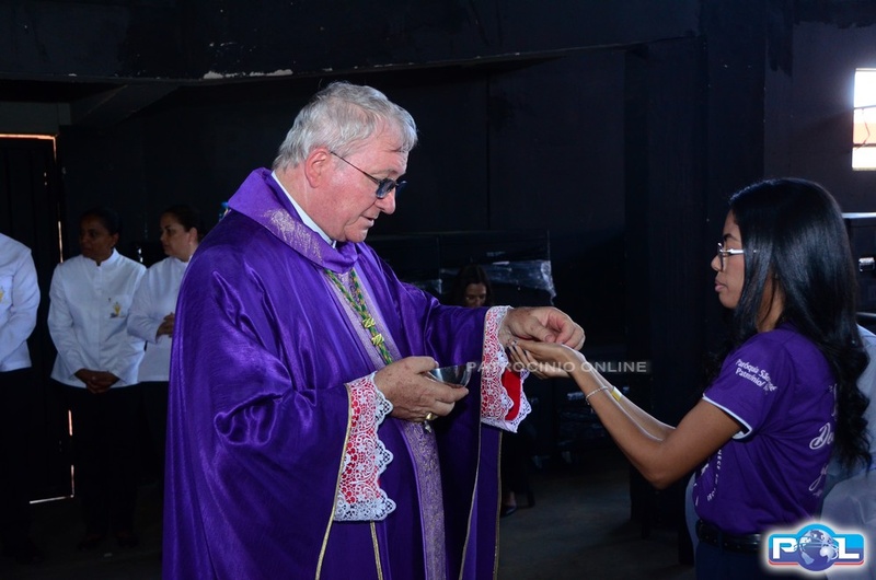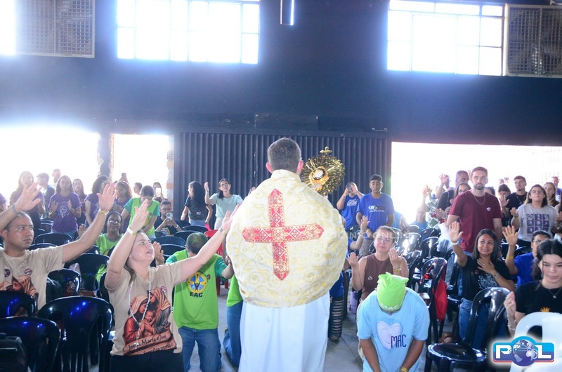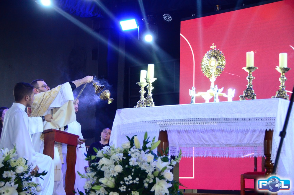 Depois da Santa Missa, a programação seguiu com Adoração ao Santíssimo Sacramento, momentos de louvor, pregação e testemunho com Jailson Jota.