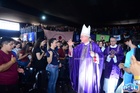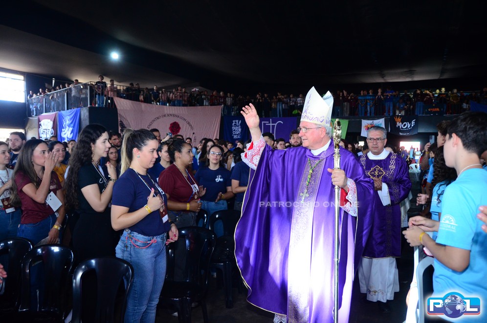 Em um momento emocionante da homilia, Dom Cláudio comparou o Paiolão, local da celebração, à “montanha do Senhor” anunciada pelo profeta Isaías, destacando que, assim como na profecia, os jovens “vieram pressurosos” para subir essa montanha e se encontrar com Deus. Citou ainda outras passagens de Isaías, especialmente a que convida a transformar armas em instrumentos de trabalho, simbolizando a necessidade de substituir tudo o que gera violência e injustiça por ações que promovam a paz, a vida e a justiça. Segundo ele, essa postura é sinal de esperança e expressão concreta do compromisso cristão por um mundo mais fraterno.