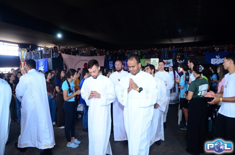Antes da Santa Missa, a Cruz Peregrina da JDJ foi recebida ao som da canção do Padre Zezinho “No Peito Eu Levo uma Cruz”, juntamente com a entrada do ícone de Nossa Senhora Salus Populi Romani, dos missionários e dos organizadores.