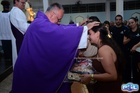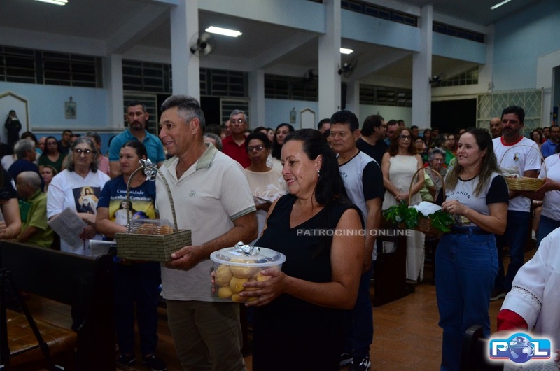 No ofertório, fiéis levaram as âmbulas até o altar, e o sacerdote recebeu presentes em sinal de gratidão.