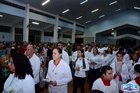 A Santa Missa de despedida reuniu pastorais, movimentos, fiéis, coroinhas, servidores do altar, ministros e integrantes do coral. A celebração foi presidida pelo próprio padre Geraldo Abílio e concelebrada por Osvanio Mariano, Superior Provincial do Brasil e Região do Paraguai da Congregação SS.CC., e pelo futuro pároco da Paróquia São Damião de Molokai, Alexandre Campos.
