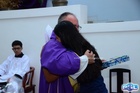 Após a missa, os fiéis tiraram fotos e se despediram com abraços, marcando um momento de emoção e gratidão.