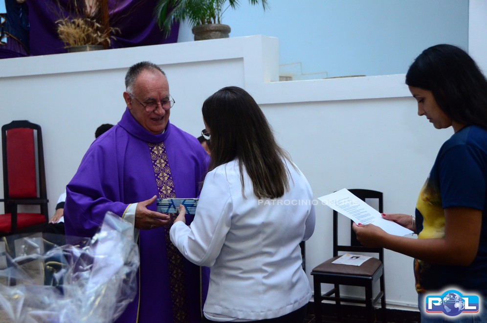 Ao final da celebração, padre Geraldo Abílio ss.cc foi homenageado pela comunidade em reconhecimento ao trabalho desenvolvido em Patrocínio.