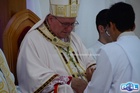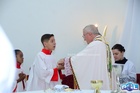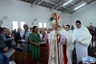Seguindo o rito, o bispo consagrou a Eucaristia.
