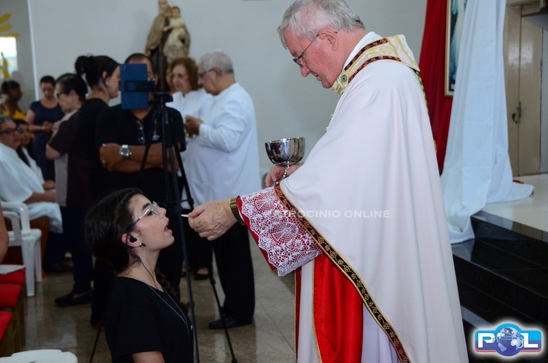 Os fiéis comungaram, recebendo o Corpo de Cristo.