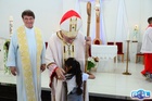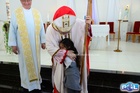 Antes da Missa e no final, tirou fotos com os fiéis, além de interagir com as crianças que o abraçavam.
