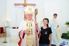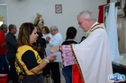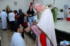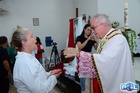 Ao final, o bispo diocesano recebeu um presente da paróquia.