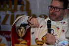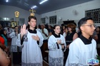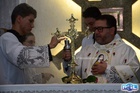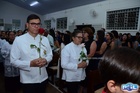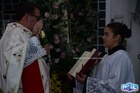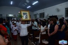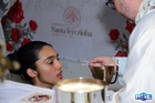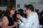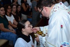 Após a homilia, Padre Marcelo abençoou a água e aspergiu as flores com água benta.