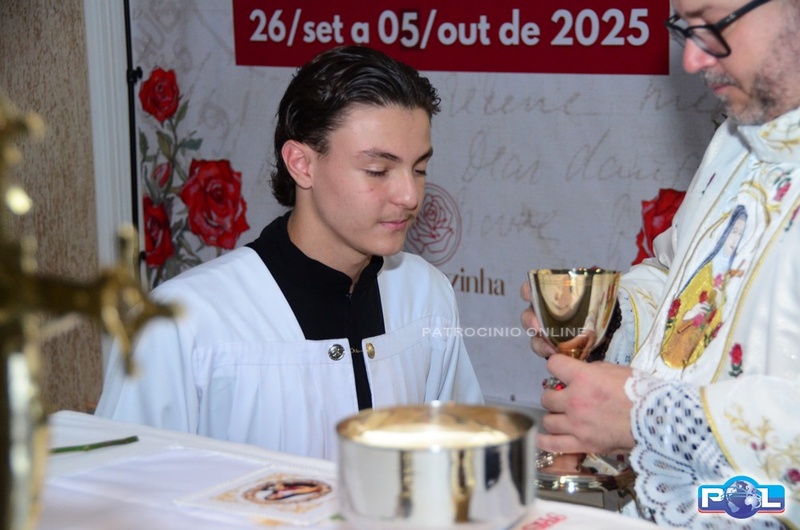 Durante a procissão de entrada, um quadro de Santa Terezinha foi conduzido solenemente, acompanhado de uma relíquia, um pedaço de pano que tocou o corpo da Santa, gentilmente cedido pelo Padre Vitor Alexandre, reitor do Seminário Menor. Essa relíquia permanecerá em exposição até o encerramento da festa.
