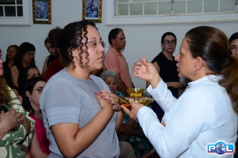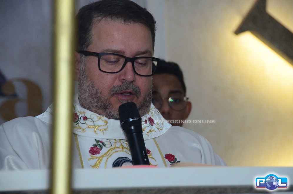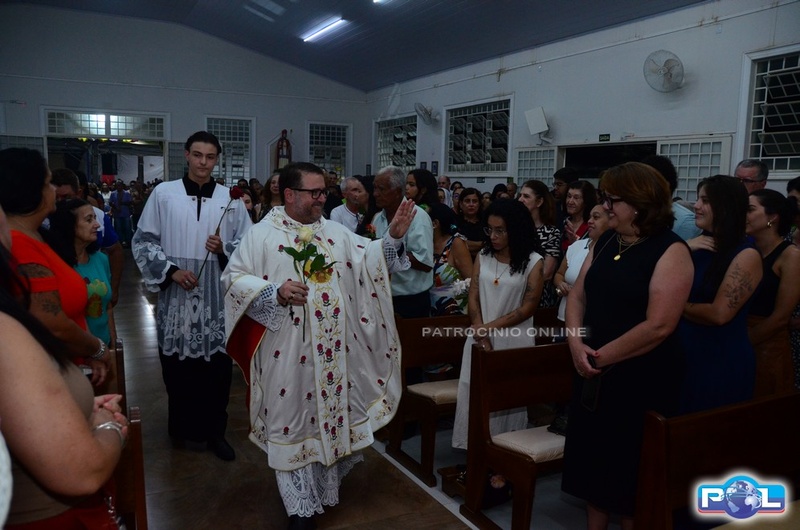 Em seguida, presidiu a Santa Missa com a colaboração dos acólitos, coroinhas, ministros extraordinários da Eucaristia, leitores e do coral da cidade de Patos de Minas.