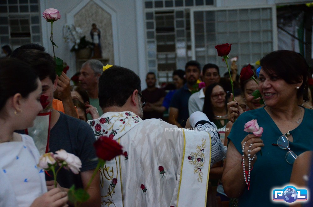 Antes da celebração eucarística, o pároco Padre Marcelo Marins rezou o 6º dia da novena em louvor à Santa.