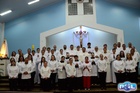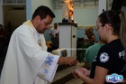 Após o sacedorte tirou fotos com os fiéis.