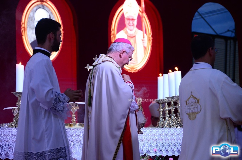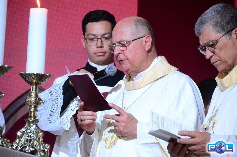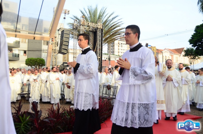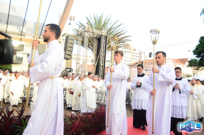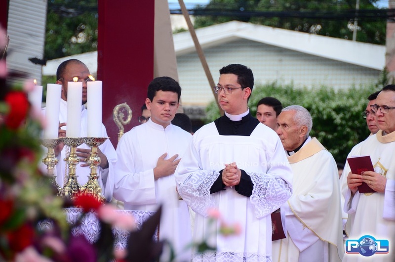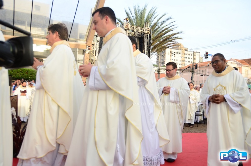 A Santa Missa foi presidida por Dom Cláudio Nori Sturm, bispo diocesano, e concelebrada por Dom Darci José Nicioli, arcebispo de Diamantina; Dom Jorge Alves Bezerra; Dom João Bosco Óliver de Faria, terceiro bispo da Diocese de Patos de Minas e arcebispo emérito de Diamantina; e Dom Antônio Carlos Paiva, bispo coadjutor, oriundo do clero de Patos de Minas.