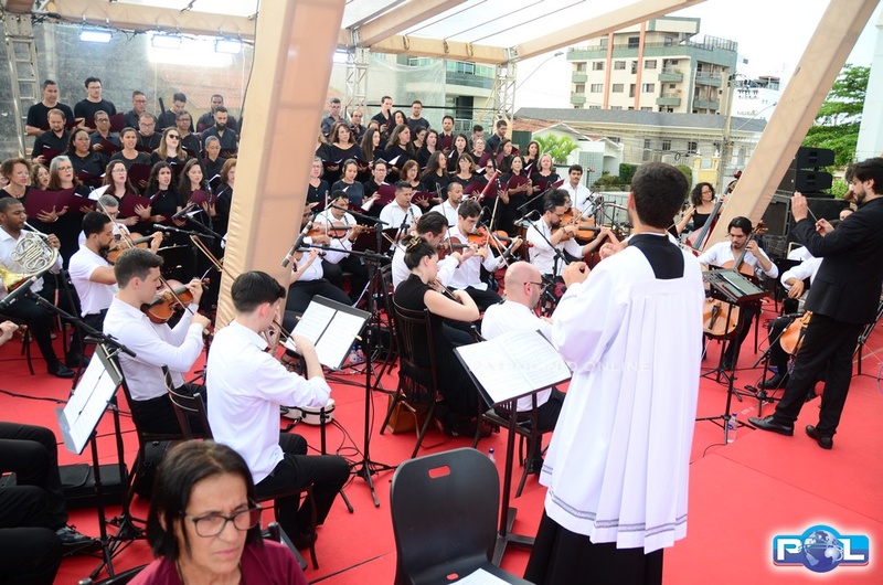 Uma grande estrutura foi montada em frente à Catedral para acolher o público em um dia de celebração, fé e gratidão.