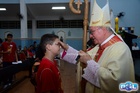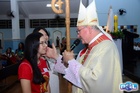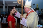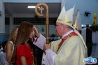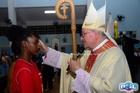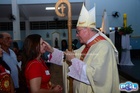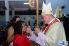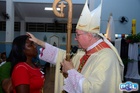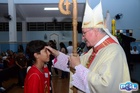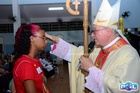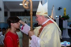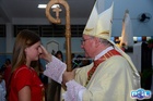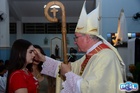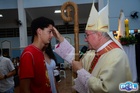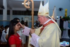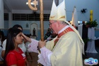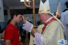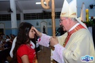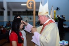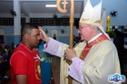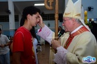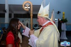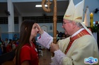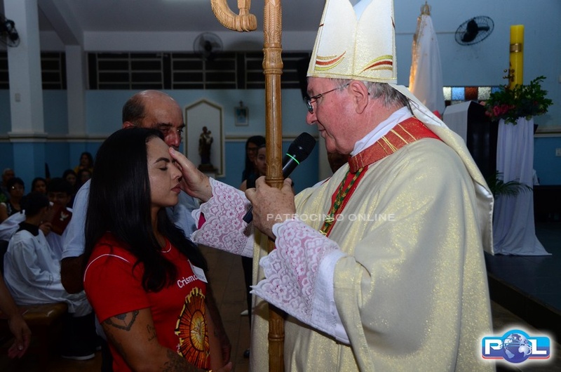 O momento mais aguardado foi quando cada crismando se aproximou de Dom Cláudio, acompanhado de seu padrinho ou madrinha, recebendo na testa o sinal da cruz com o óleo do Crisma.