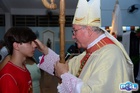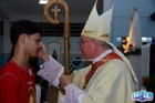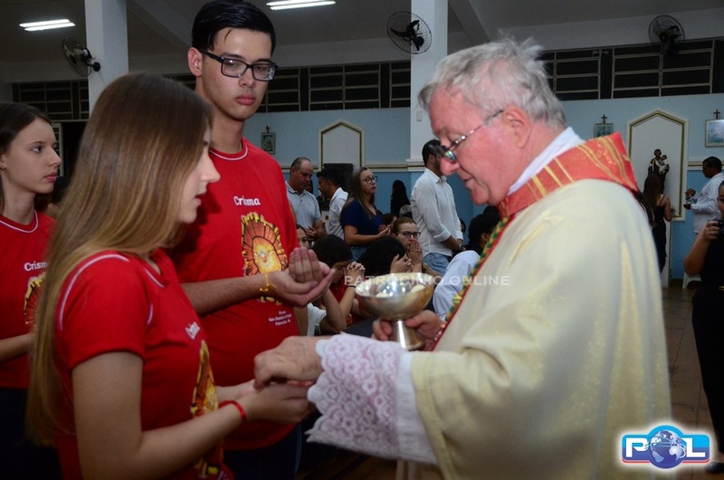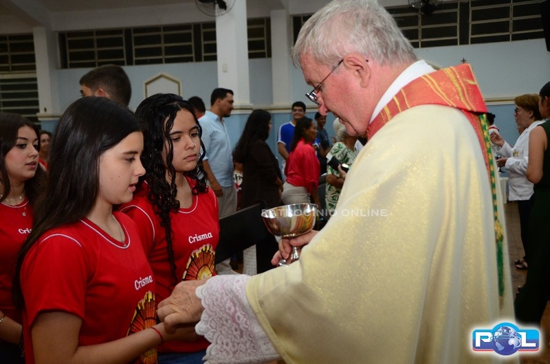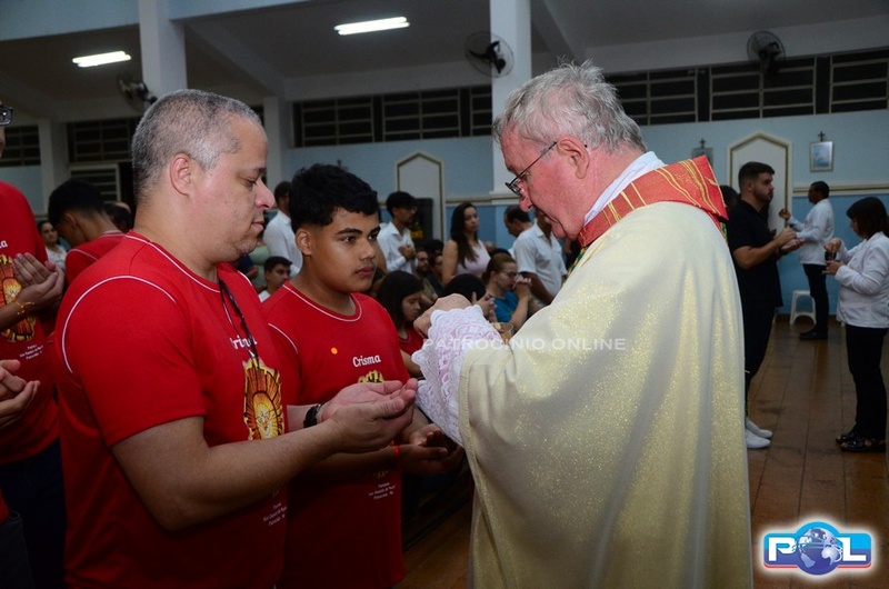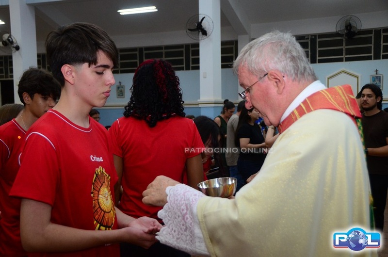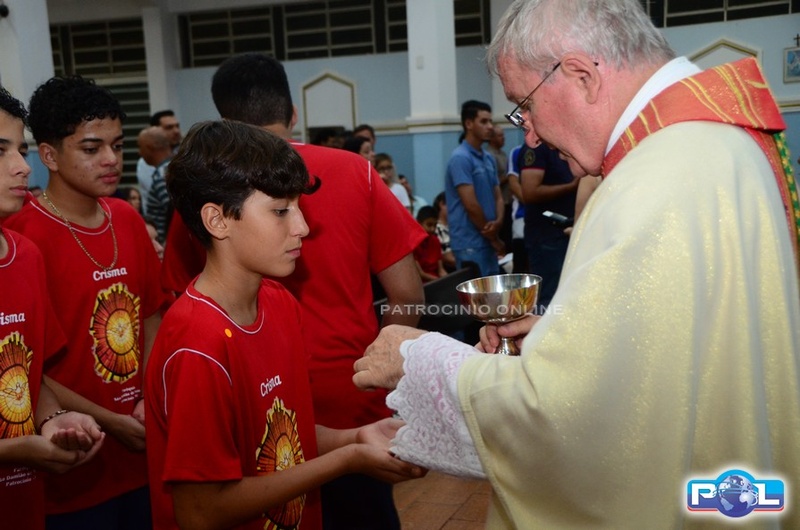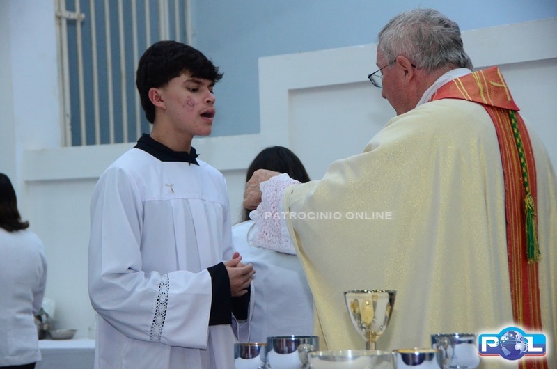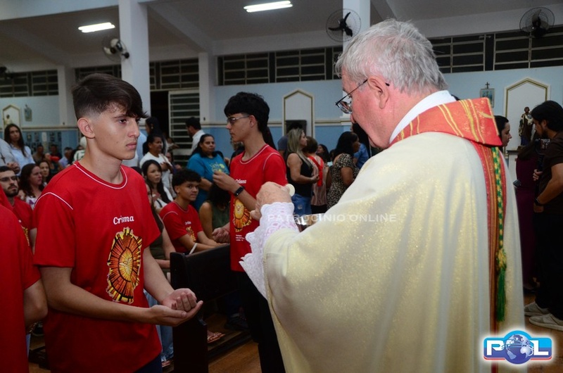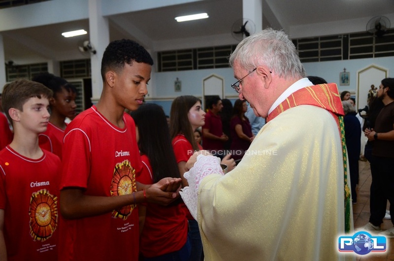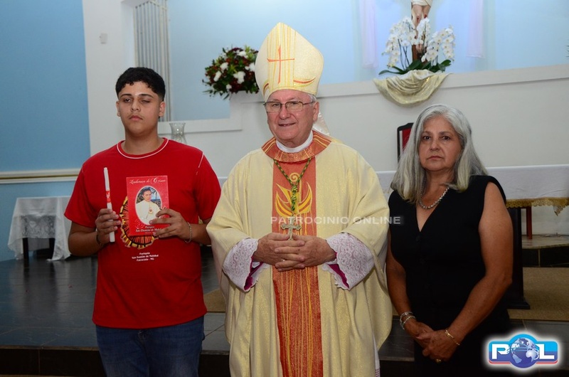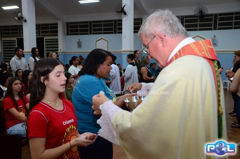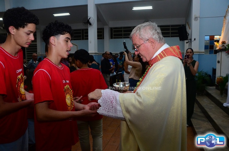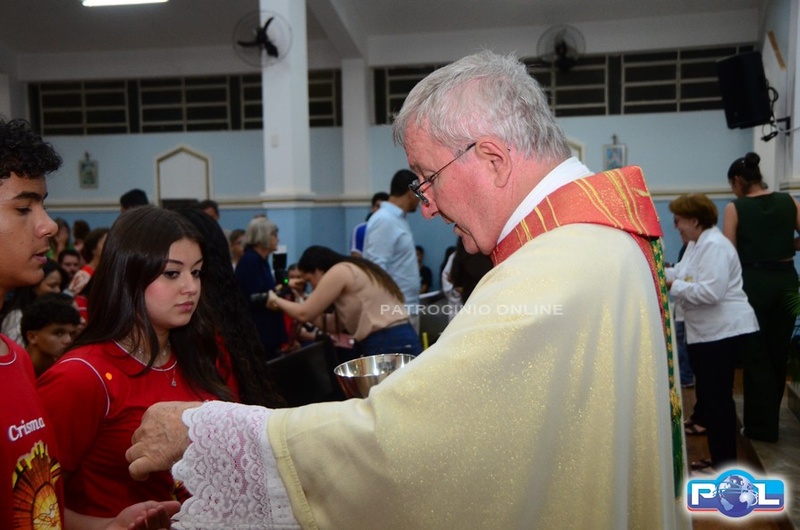 A Santa Missa de imposição das mãos e unção foi presidida por Dom Cláudio Nori Sturm, bispo da Diocese de Patos de Minas, e concelebrada pelo padre Alexandre Campos, ss.cc., e pelo vigário paroquial Élcio, ss.cc. Na terça-feira, também participou o Padre Luiz Antônio, que, além de concelebrar, foi padrinho de Crisma de um dos adolescentes.