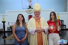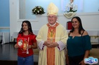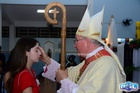 Dando sequência, o bispo estendeu as mãos sobre os confirmados e fez uma oração pedindo a vinda do Espírito Santo, concedendo seus sete dons a todos.