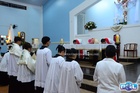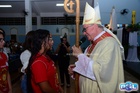 A celebração teve início com a procissão de entrada dos acólitos, coroinhas, ministros, diácono permanente, padres e o bispo, que concedia a bênção aos crismandos, os quais faziam o sinal da cruz.