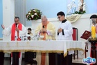 Em seguida, prosseguiu o rito da Santa Missa com a consagração do Corpo e Sangue de Cristo.