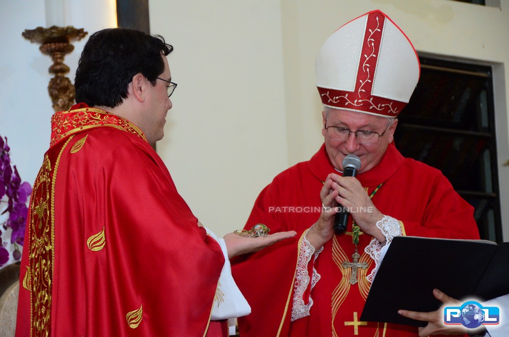 “É com alegria que hoje confio esta porção do Povo de Deus, da Paróquia São Sebastião de Guimarânia, para que você seja pastor e guia deste povo. Que possas desenvolver o teu ministério com cuidado, muito amor e alegria, servindo, acolhendo e anunciando a Palavra de Deus a todos, além de distribuir os sacramentos que a Igreja oferece aos seus fiéis.”