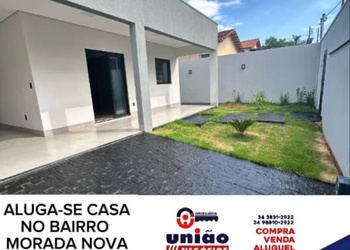 Aluga-se casa com 3 quartos sendo 1 suíte, sala conjugada com a cozinha, banheiro social, área de serviço, garagem p/ 3 carros sendo um descoberto, área gourmet com churrasqueira, localizada no Bairro Morada Nova. Valor: 2500,00 Mais informações entre em contato com a Imobiliária União Negócios Telefones: 34 3831-2922 34 98810-2922