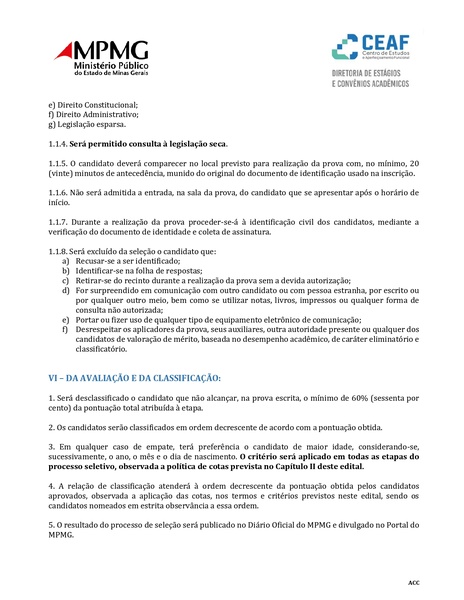 O resultado será divulgado no Diário Oficial do MPMG e no Portal do MPMG;