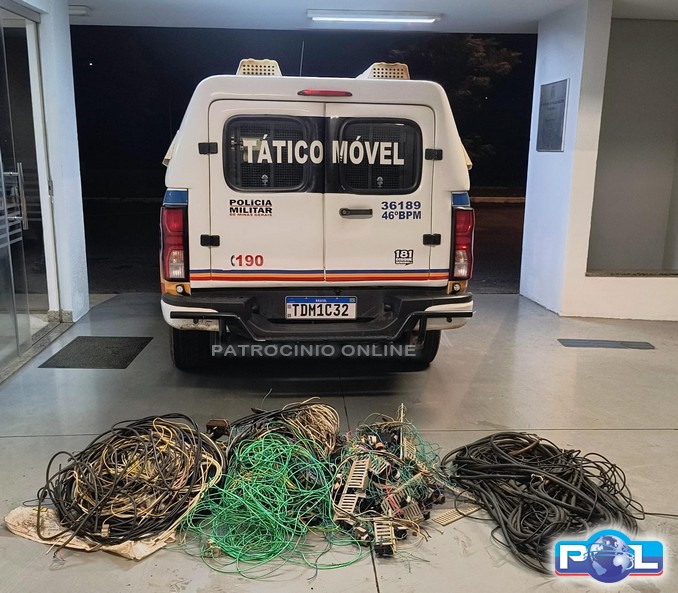 Durante a aproximação, os militares avistaram um homem caminhando pela estrada com sacos contendo materiais furtados e, ao perceber a presença policial, ele tentou fugir, mas foi perseguido e preso. O suspeito confessou participação no furto.