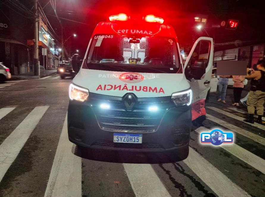 PATROCÍNIO (MG) – A Polícia Militar durante patrulhamento preventivo na noite de quinta-feira, 30/10, por volta das 19h00min, deparou-se com um acidente com vítima no cruzamento da Avenida Faria Pereira com a Rua Jacob Marra, no centro de Patrocínio, envolvendo um veículo particular e uma ambulância do SAMU.