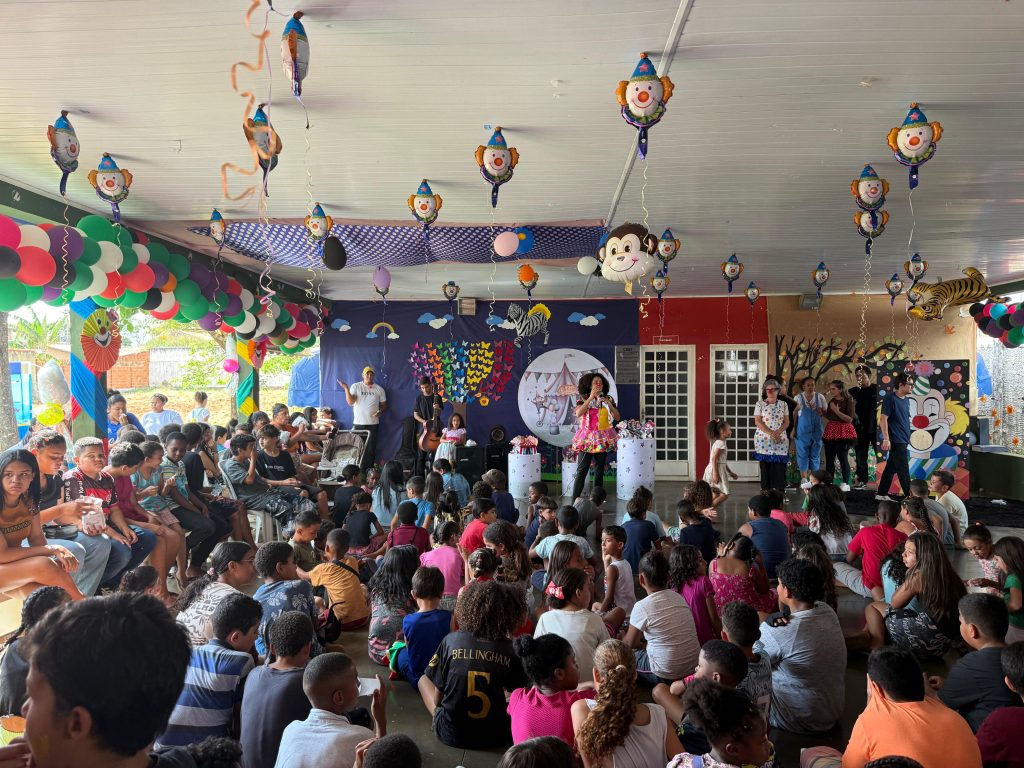 Durante a tarde, foram servidos lanche, pipoca e sorvete, garantindo o sorriso e a energia da garotada até o encerramento.