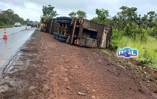 VÍDEO: Carreta carregada com bovinos tomba na BR-365, no município de Patrocínio