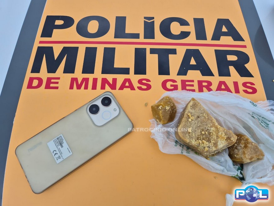 A substância entorpecente e um celular foram apreendidos pelo crime relacionado a narcóticos e entregues à Delegacia para as demais providências legais.
