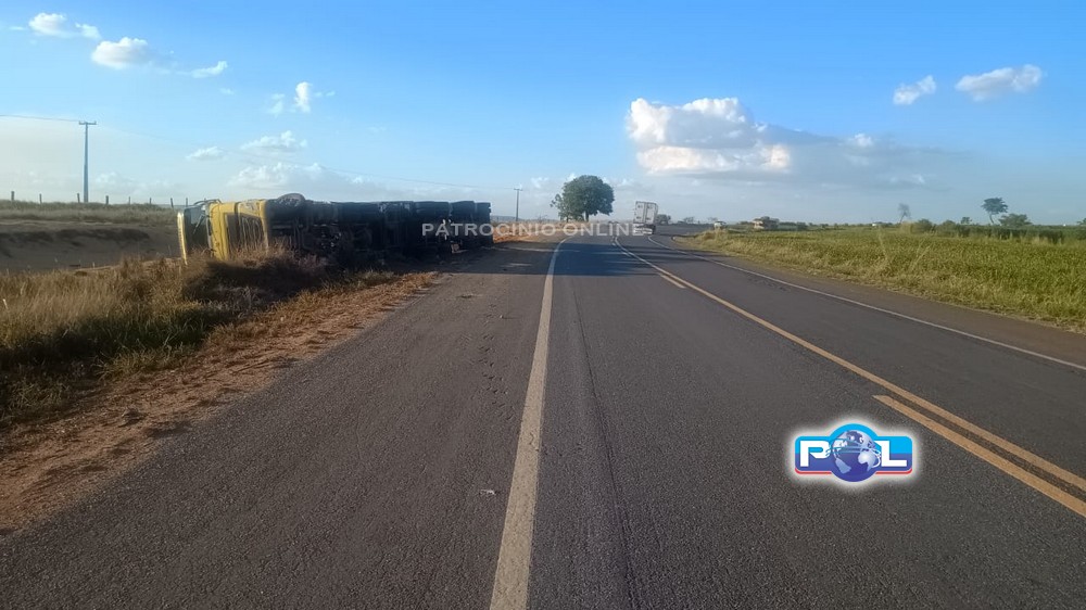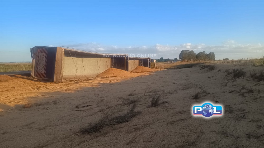 A Polícia Militar Rodoviária e o SAMU foram acionados na tarde de quarta-feira, 12/11, por volta das 16h30min, para atender um tombamento de um caminhão carregado com soja a granel, que se encontrava fora da pista de rolamento, na BR-146, km 78, no município de Serra do Salitre.