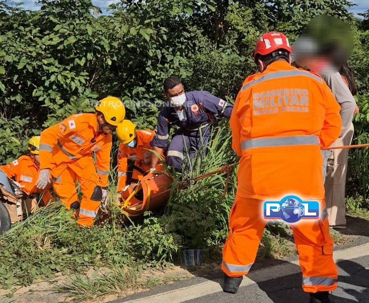 Os bombeiros deslocaram-se até o local, onde já havia uma equipe da Polícia Militar de Meio Ambiente realizando a sinalização da via e o controle do trânsito. Segundo relatos de testemunhas, a motocicleta Honda Fan, conduzida por R.R.B.R., de 19 anos, seguia no sentido Pedras de Maria da Cruz quando, ao realizar uma conversão na via, foi atingida por um automóvel Chevrolet Zafira que trafegava na mesma direção. Com o impacto, o condutor da motocicleta foi projetado para fora da pista, caindo em uma ribanceira de aproximadamente oito metros de profundidade. A passageira da motocicleta, de 17 anos, permaneceu caída sobre a pista de rolamento. Já o automóvel saiu da via, ficando inclinado e ameaçando tombar na ribanceira, na direção em que se encontrava o condutor da motocicleta.