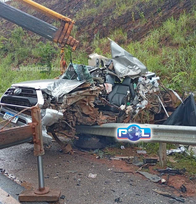A Polícia Militar Rodoviária, Samu e os militares do Corpo de Bombeiros foram acionados na tarde desta quarta-feira, 11/2, por volta das 12h06min, para um grave acidente com vítima fatal envolvendo uma caminhonete Hilux e uma carreta carregada com grãos na BR-251, km 931, no município de Unaí/MG.